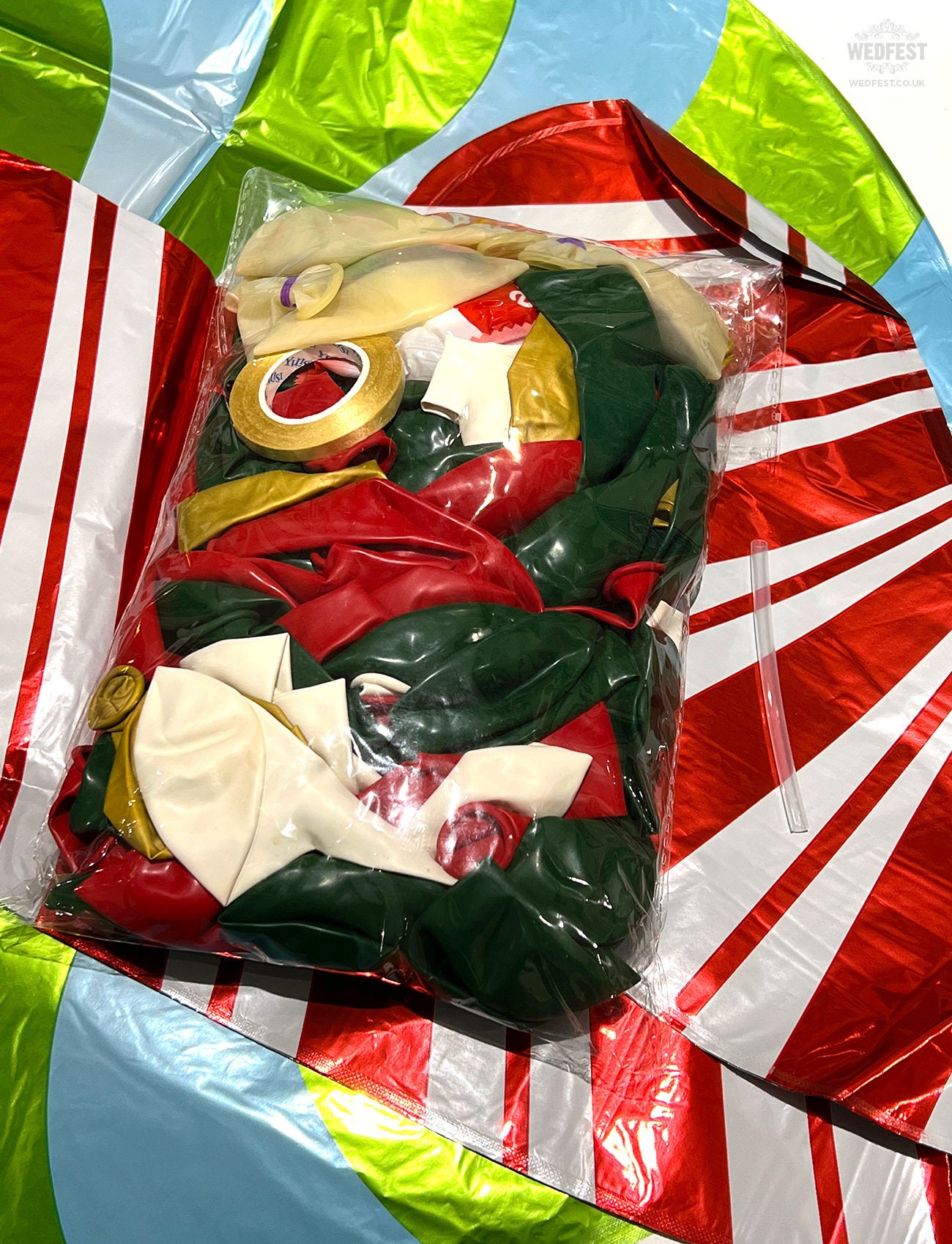 Beautiful Christmas Party Balloons. Christmas Party Garland Decorations. Perfect for Christmas parties, backdrops and photo opportunities. Balloons can be air filled or filled with Helium if you want them to float.