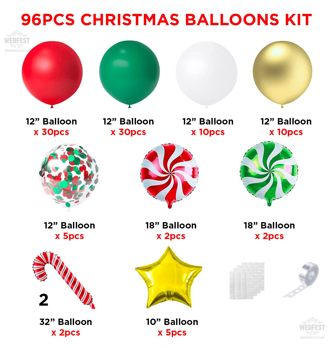 96 pieces Christmas Party Balloons Garland Arch Kit Decorations Set