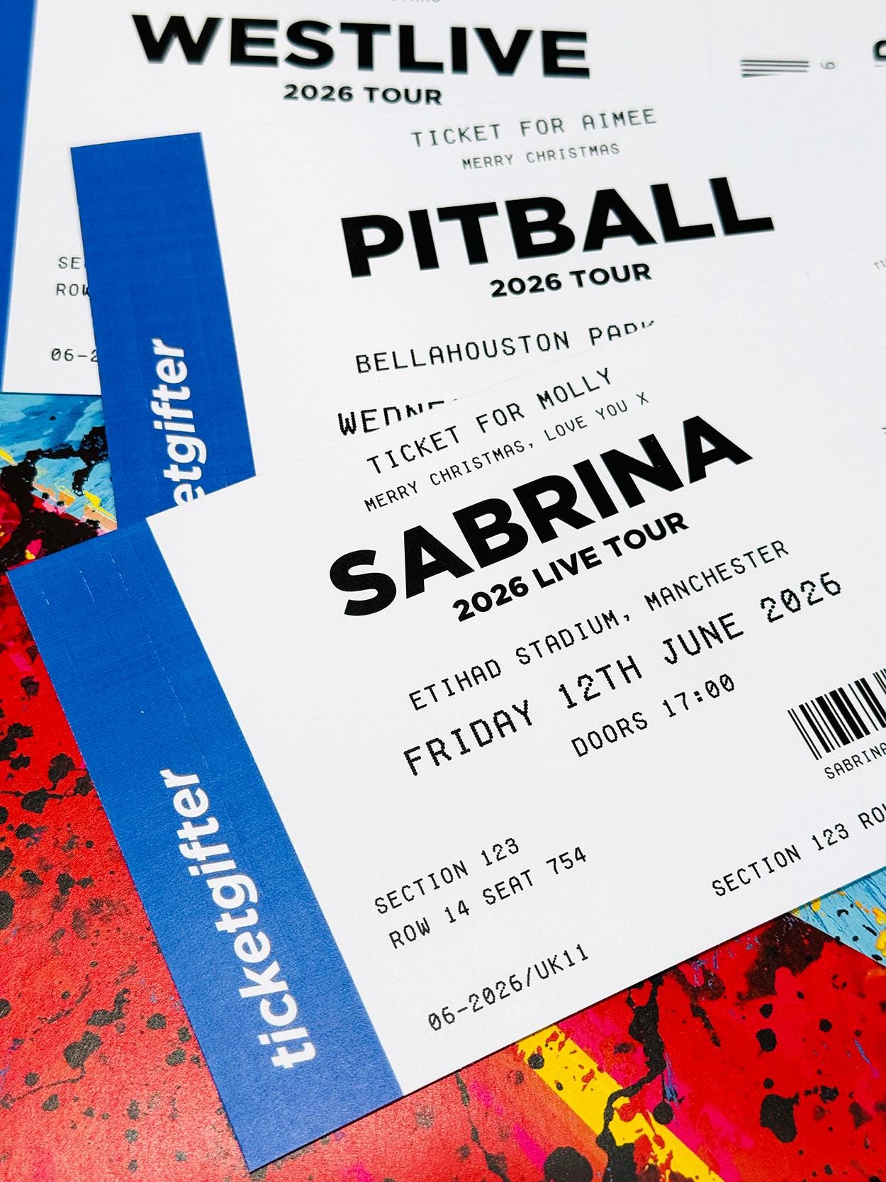 The tickets can be fully personalised with your loved ones name, the artist or band they are going to see, and the all the concert details including venue, city and date they will be attending etc.