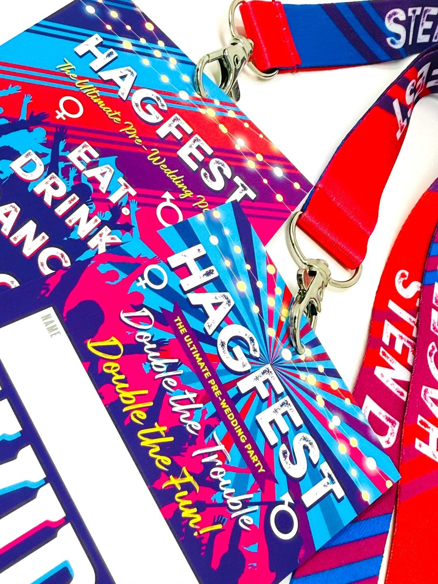 Bring the full festival atmosphere to your celebration with our HAGFEST joint hen and stag party VIP pass lanyards, designed to look and feel like a real event backstage pass.