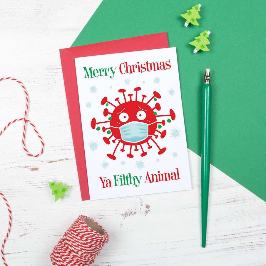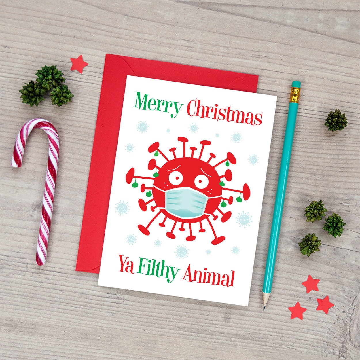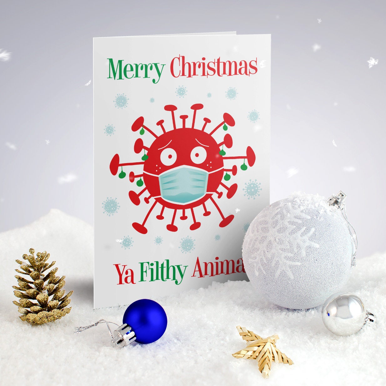 Coronavirus Covid Themed Christmas Card - Merry Christmas Ya Filthy Animal Christmas Card - Funny / Rude Christmas Cards