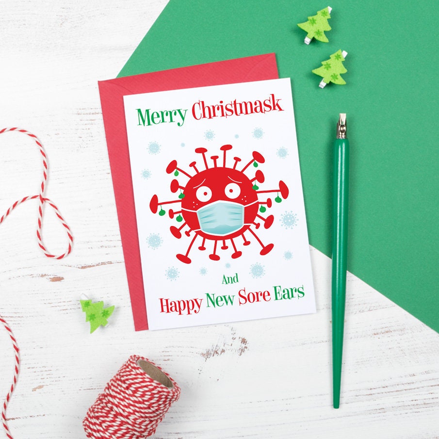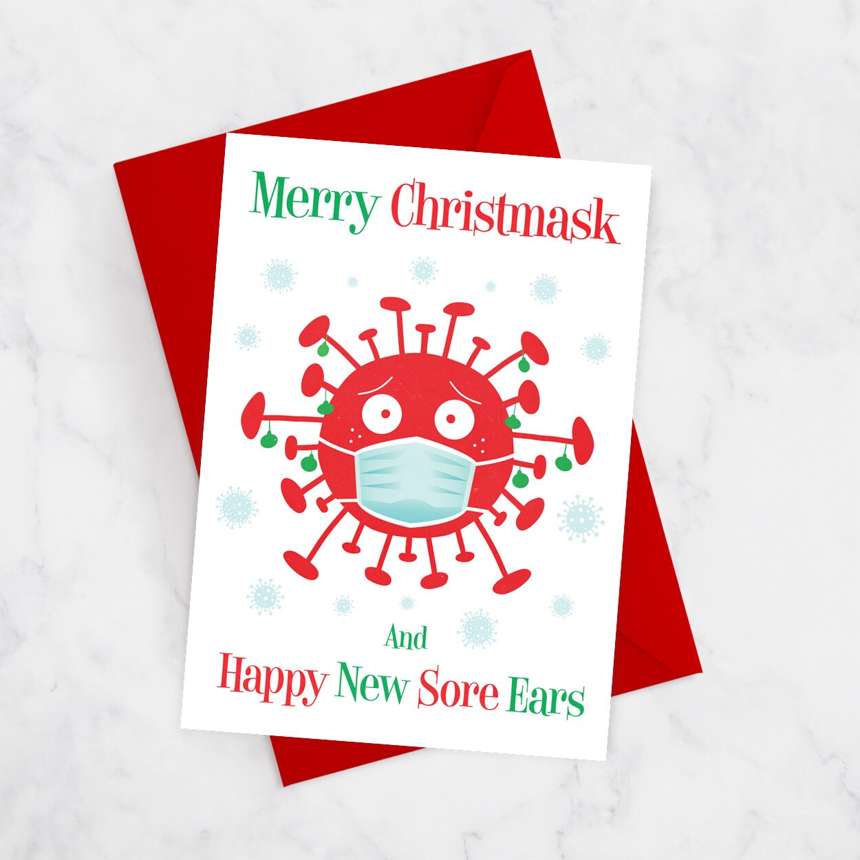 Coronavirus Covid Themed Christmas Card - Merry ChristMASK and Happy New Sore Ears Christmas Card - Funny Christmas Cards